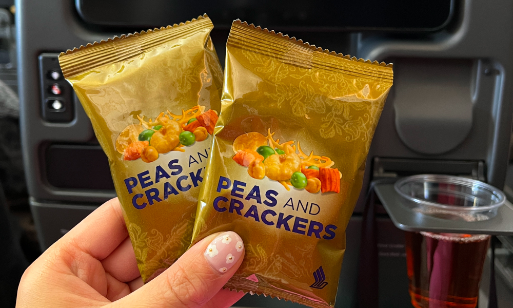 スナックは、ナッツとフライドチップのような小袋のお菓子を一人につき2袋いただけました!